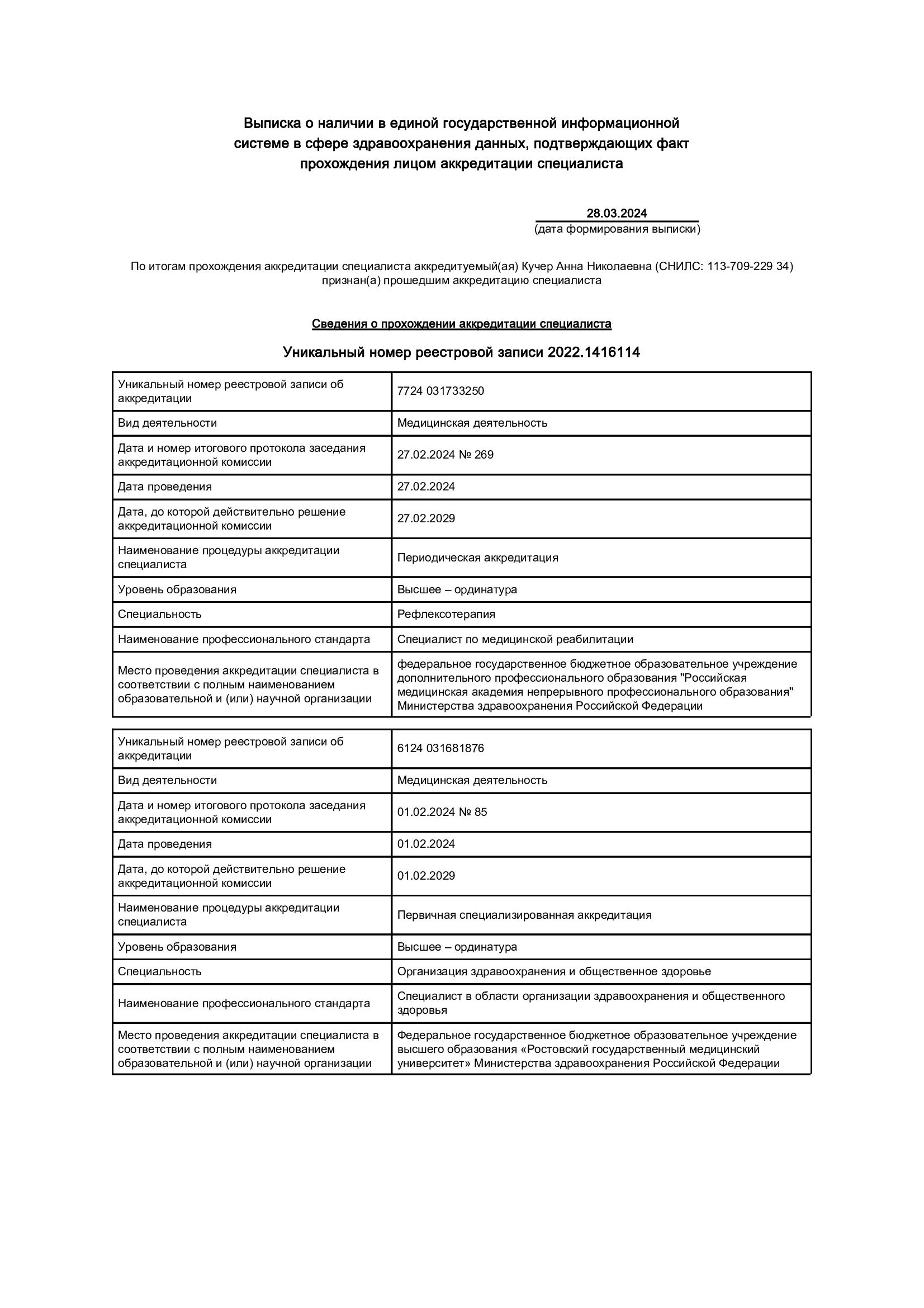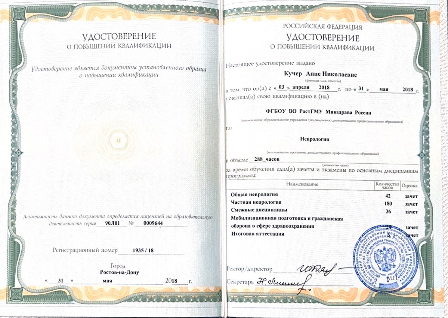 К Кучер Анне Николаевне мы с супругом обратились в первый раз. Данного специалиста нам порекомендовали. Впечатление осталось хорошее. Доктор оказалась отзывчивой, она все объяснила, учитывая имеющиеся нюансы. Дело в том, что пациент плохо слышит, а специалист приняла это во внимание и прекрасно все разъяснила. В кабинет нас с мужем пригласили вовремя, без задержки. С собой мы принесли снимки и обследования других врачей. Анна Николаевна всё изучила, тщательно опросила пациента, аккуратно провела осмотр, в том числе использовала молоточек. Дело в том, что боль такого характера беспокоит давно, поэтому я сразу объяснила Кучер А.Н., что посмотреть. На основе полученной информации она сделала выводы. Мой супруг обратился к неврологу, потому что у него сильно болит рука. Доктор сказала, что проблема возникла вследствие защемления. Кроме того, у мужа онкология, и врач предположила, что боль может идти оттуда, впрочем мы сами это подозревали. В итоге специалист выдала рекомендации и назначила лечение, поэтому расписала время приема препаратов и дозировки. Терапия направлена на то, чтобы облегчить болевой синдром, но доктор сразу предупредила, что лечение не поможет так, как мы ожидаем, потому что причина лежит гораздо глубже. Прием продолжался, наверное, полчаса, так как врач делала все, чтобы разобраться. Мне кажется, времени было уделено даже больше обычного, потому что в кабинет заглядывал, судя по всему, следующий пациент, который уже ждал. Несмотря на то, что мы территориально удалены от специалиста, если потребуется и будет возможность, обязательно обратимся к ней снова. Также я считаю, что такого доктора как Кучер Анна Николаевна можно рекомендовать другим людям.