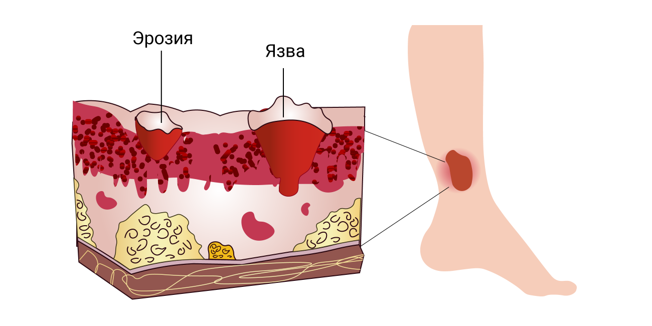 Трофическая язва — это дефект кожи и подлежащих тканей, который образуется из-за нарушения кровоснабжения или иннервации. Чаще всего такие язвы появляются на нижних конечностях и связаны с заболеваниями сосудов или сахарным диабетом. Основные причины возникновения трофических язв включают:
